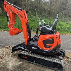 6.400,00$ (TVA y compris)Mini-pelle BAIMSE 1,8 t compacte et maniable, moteur Kubota 3 cylindres, rotation 360°, idéale pour les travaux de terrassement et d’aménagement en espaces restreints.