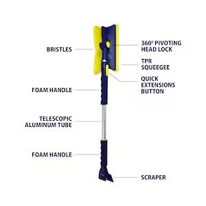 Lame de raclette intégrée à la tête de brosse : utilisez la raclette en TPR flexible pour nettoyer la neige mouillée, la neige fondante ou la boue de vos fenêtres pour une visibilité maximale toute l’année