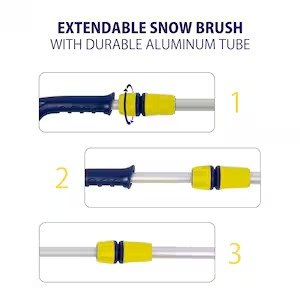 Brosse à neige extensible de 89 à 114 cm (35” à 45”) : utilisez le simple système de verrouillage par rotation pour étendre la brosse de 89 à 114 cm (35” à 45”) pour atteindre tous les coins de votre véhicule