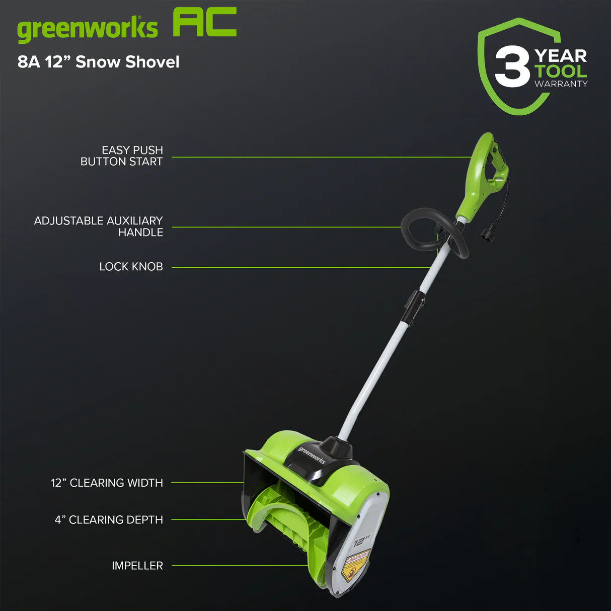 Soyez le premier à commenter “Pelle à neige filaire Greenworks 8 Amp 12 pouces”