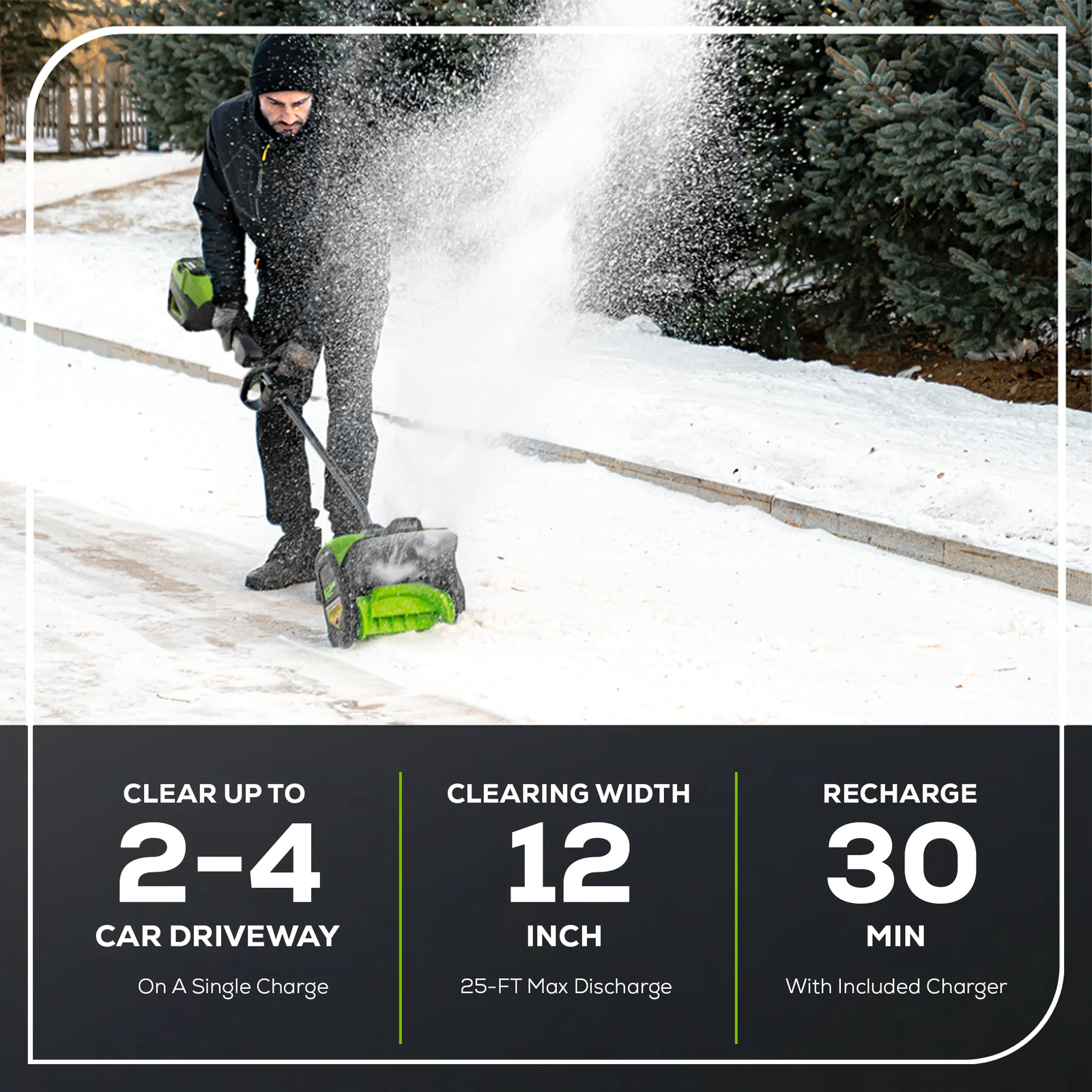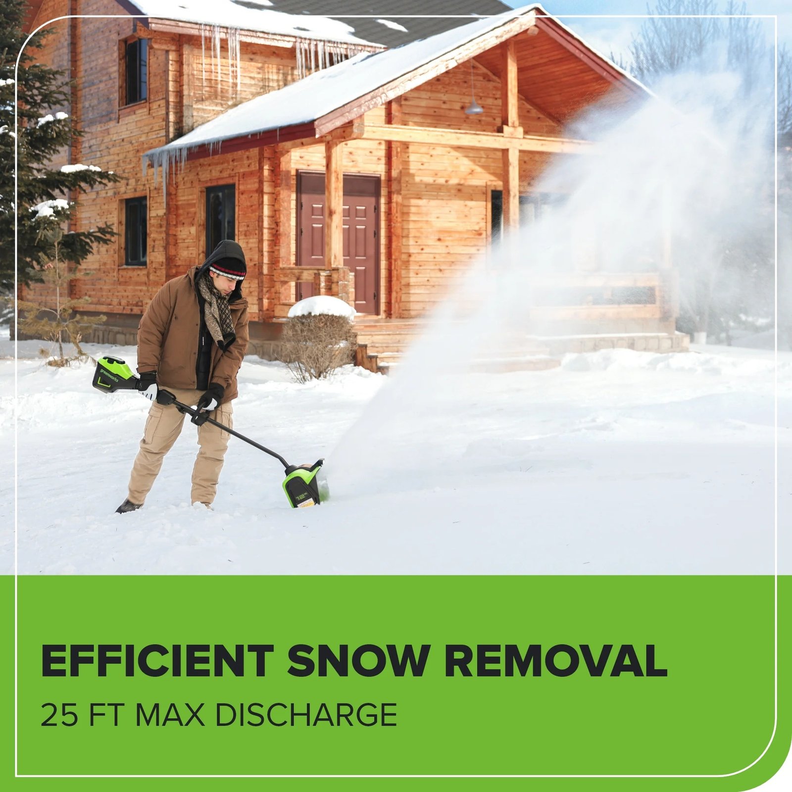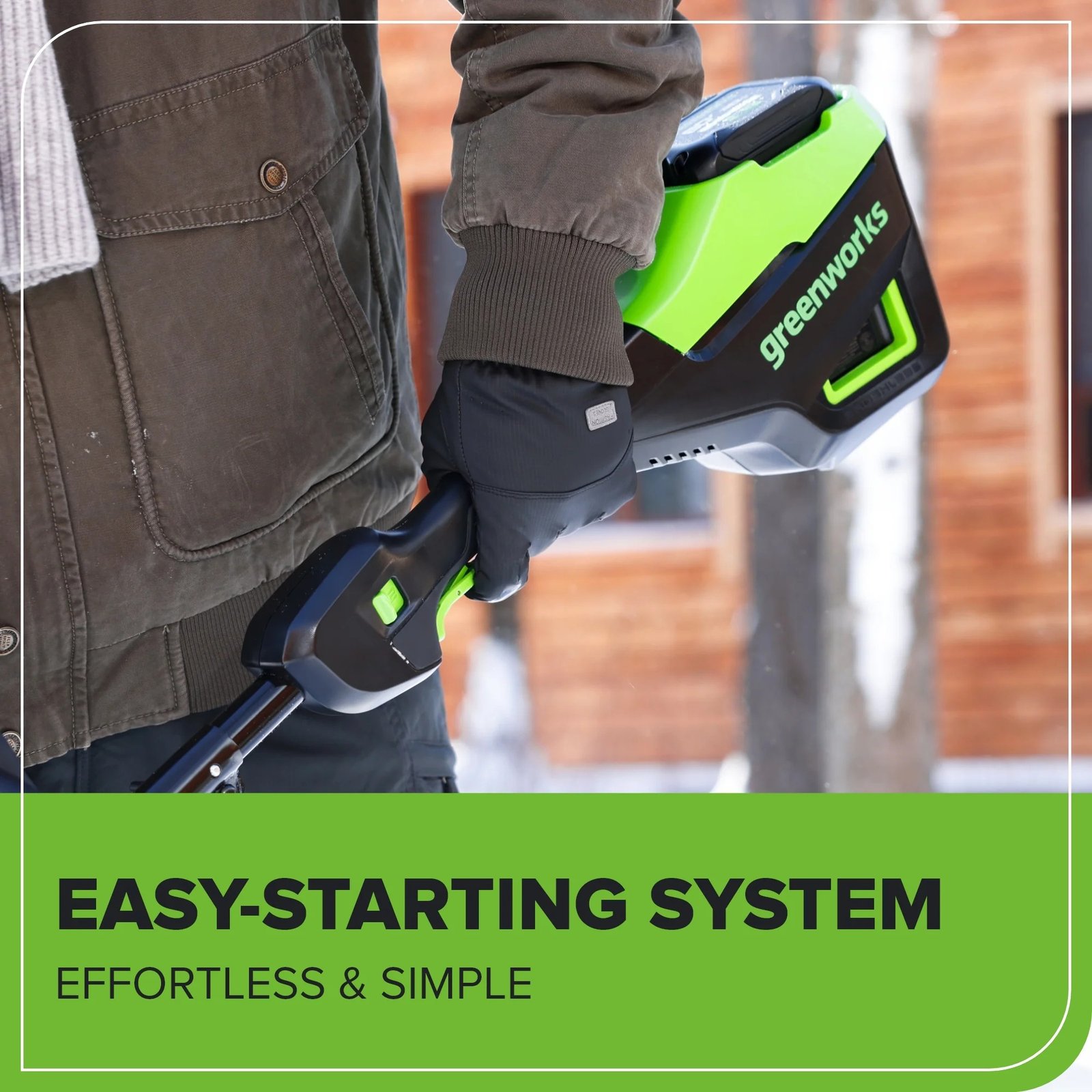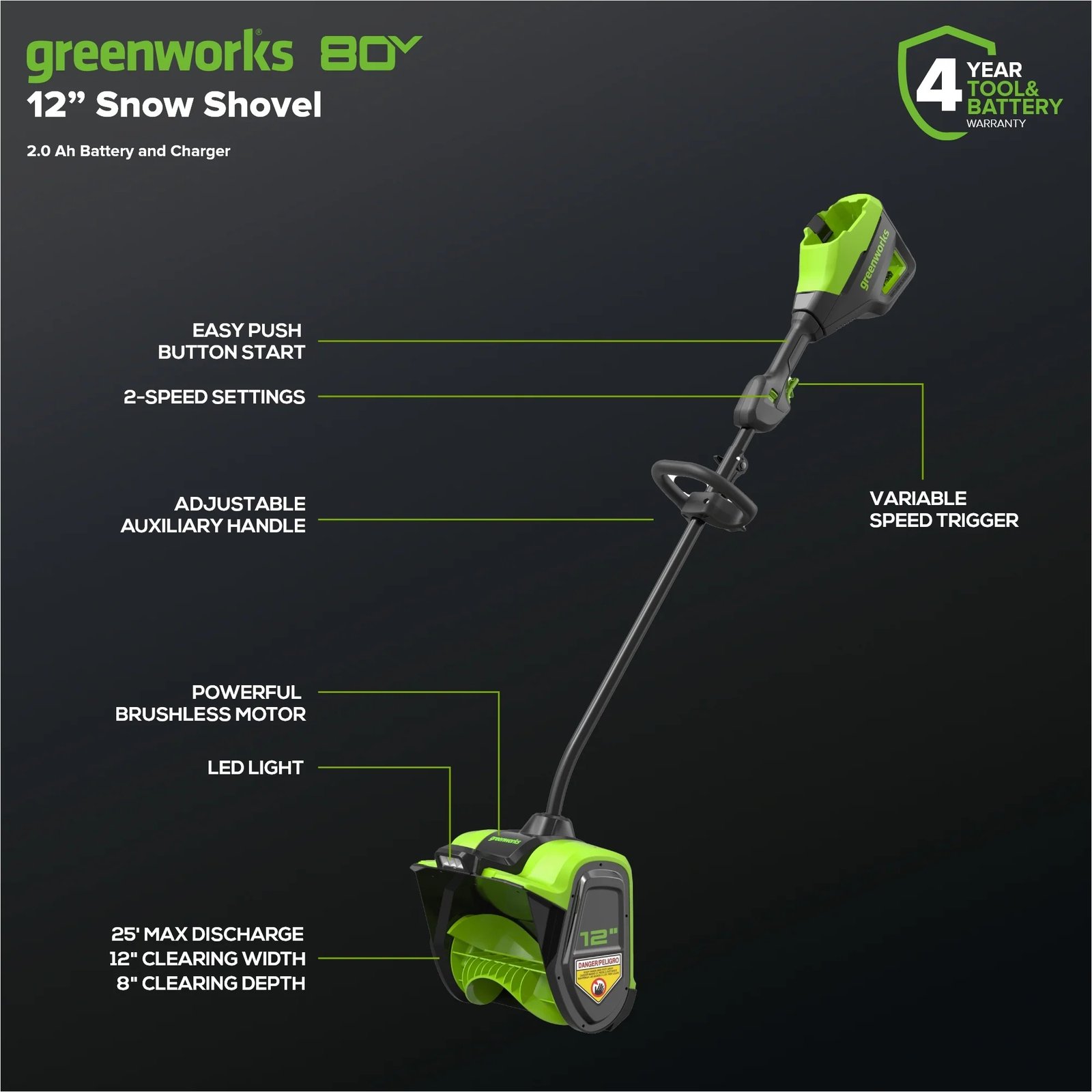 Bienvenue dans un monde où la vie est plus facile avec Greenworks. Déneigez vos trottoirs et allées plus facilement cet hiver grâce à la pelle à neige sans fil Greenworks 80 V de 30 cm. Dotée d’un moteur sans balais haute performance de 2,5 kW et d’une turbine à deux vitesses atteignant 2 500 tr/min, cette pelle à neige ne manquera pas de vous impressionner. Ses lumières LED puissantes et son fonctionnement silencieux la rendent pratique à utiliser tôt le matin ou tard le soir. Alimentée par une batterie lithium-ion 80 V, elle offre une largeur de déneigement de 30 cm et une profondeur de 20 cm. Dites adieu à l’essence cet hiver et bonjour à Greenworks ! Cette pelle à neige est compatible avec l’ensemble du système d’outils et de batteries Greenworks 80 V. Bénéficiant d’une garantie de 4 ans, cette pelle à neige est conçue pour durer.