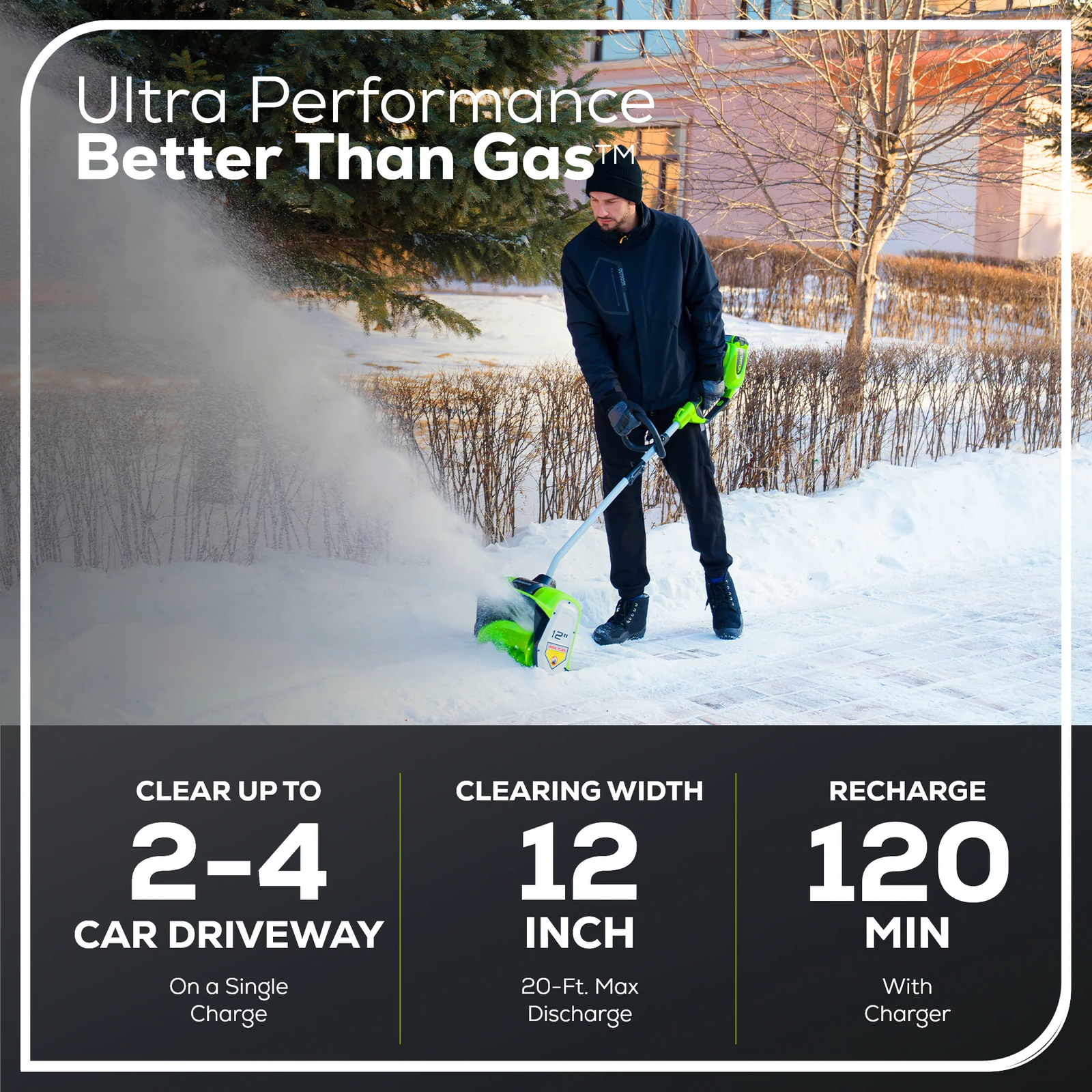 Bienvenue dans une vie plus sereine grâce à Greenworks. Déneigez vos trottoirs et allées cet hiver en toute simplicité avec la pelle à neige sans fil Greenworks 40 V de 30 cm (12 po). Dotée d’un moteur sans balais haute performance de 1,1 kW offrant une vitesse de rotation allant jusqu’à 1 800 tr/min, cette pelle à neige est conçue pour impressionner. Son fonctionnement silencieux permet une utilisation pratique tôt le matin ou tard le soir sans déranger vos voisins. Alimentée par une batterie lithium-ion 40 V, elle offre une largeur de déneigement de 30 cm (12 po) et une profondeur de déneigement de 15 cm (6 po). Dites adieu à l’essence cet hiver et bonjour à Greenworks. Compatible avec le système complet d’outils et de batteries Greenworks 40 V (vendu au Canada), cette pelle à neige est couverte par une garantie de 3 ans, vous assurant une utilisation durable.