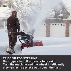Pas de gâchettes à appuyer ni de leviers à actionner ! Une manière plus simple de diriger sans effort. Tournez la machine, et la roue se débraye intelligemment pour vous aider à prendre votre virage