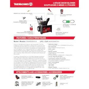 Soyez le premier à commenter “Yard Machines Souffleuse à neige à 2 phases de 30 po avec moteur Powermore de 357 cm³ et démarrage électrique”