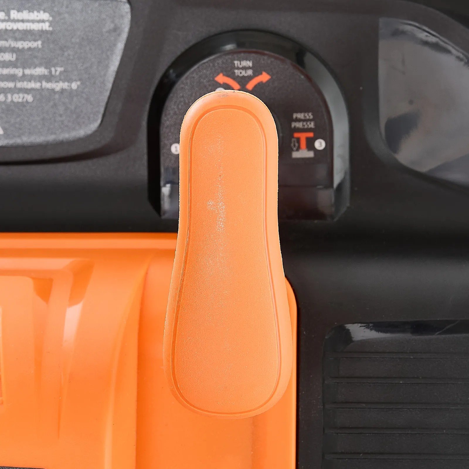 Double interrupteur de sécurité : Pour démarrer la souffleuse à neige, appuyez sur le bouton de verrouillage de sécurité avant de tirer sur la gâchette — une couche de sécurité supplémentaire pour éviter toute activation accidentelle, surtout avec des gants d’hiver.